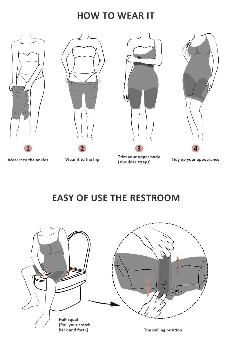 1. Fabric: 77% nylon + 23% elastane(77%nylon+23%Spandex)for stretching and comfort.Full-body bodysuit targets your belly, waist, andthighs, flattens your stomach and creates and sleek linefrom belly to thigh.