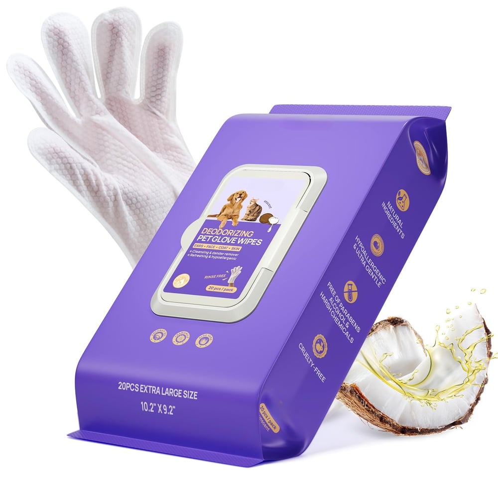 20pcs Deodorizing Pet Grooming Glove Wipes