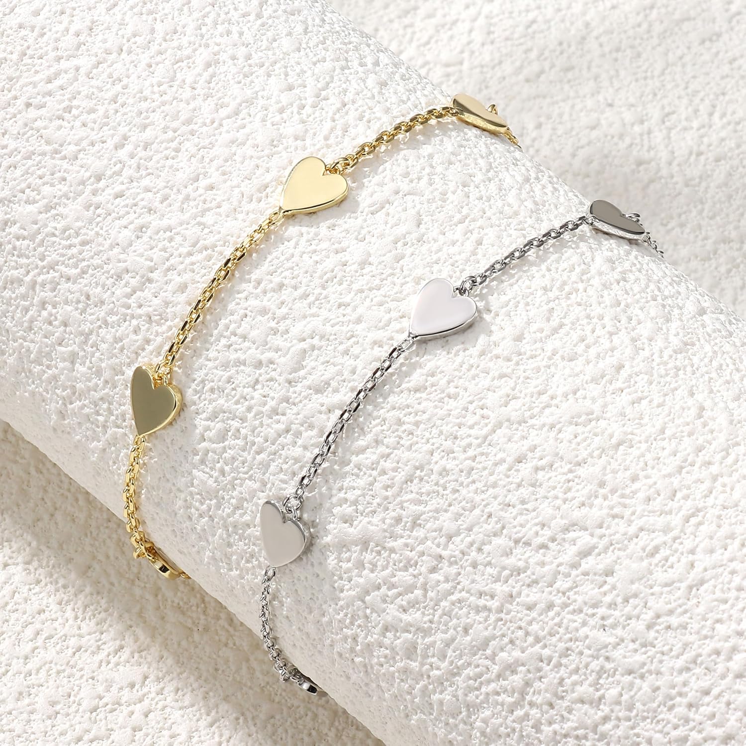 - CELEBRATE LOVE & FRIENDSHIP - Our gold heart bracelet set contains one or two elegant 9" bracelets for women, heart size 7x8mm. Perfect as a gift for women and girls, or as a companion bracelet.